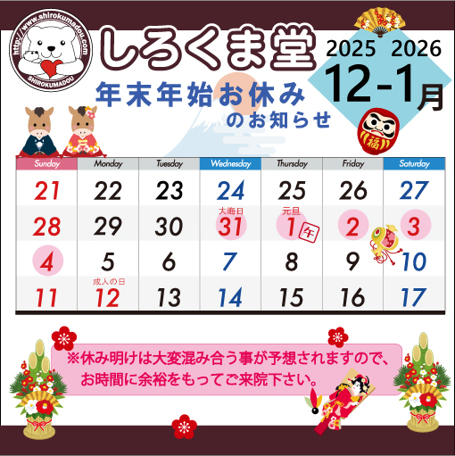 年末年始、お休みのお知らせです🎍